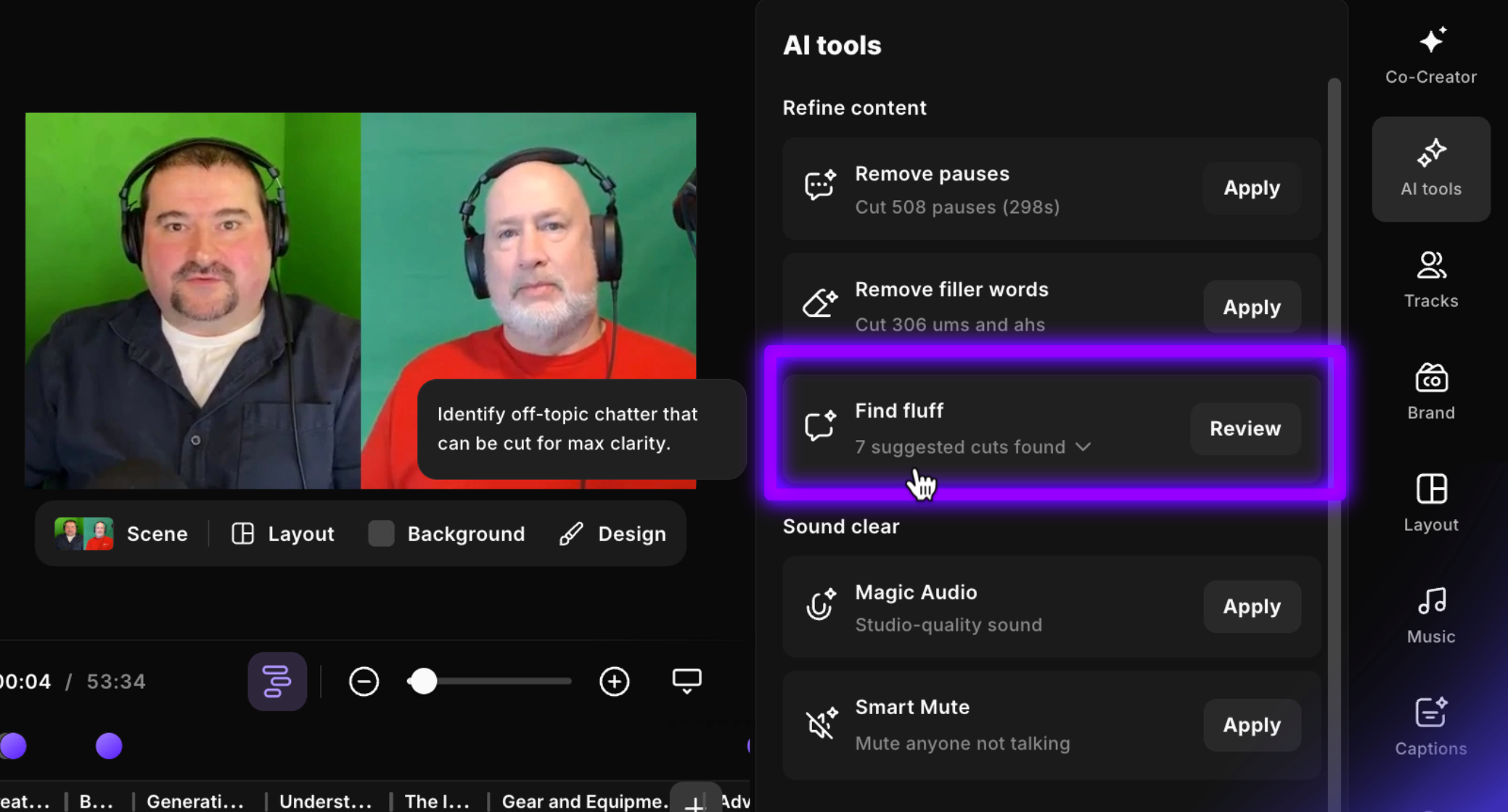 If you don’t have time to listen through a long episode, using Find Fluff can save hours. It helps you quickly address the content most likely to harm audience experience, so you can publish with more confidence. I still recommend a quick final listen of the whole episode, but this feature reduces the number of obvious issues you need to hunt for manually.
