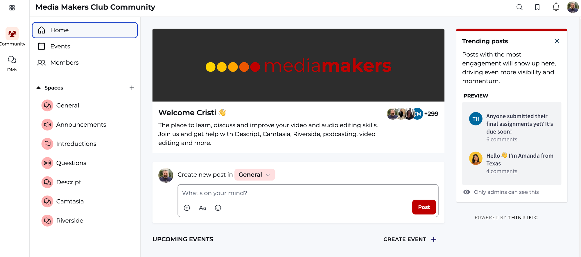 Thinkific recently added direct messaging within communities and video upload inside posts, which makes the interaction feel closer to a modern social platform rather than a bulletin board.