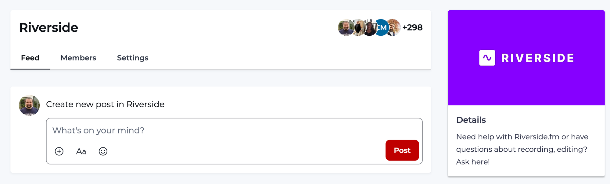 The structure works through spaces. A community can have multiple spaces, each with its own focus and discussions. Some spaces can be open to all members; others can be private, restricted to specific cohorts, tiers, or groups. Members can post, comment, react, and use @mentions. There's a threading structure that keeps discussions readable rather than turning into a wall of replies.