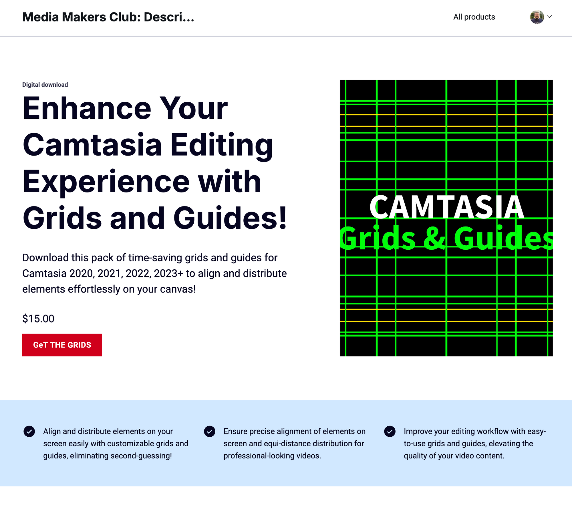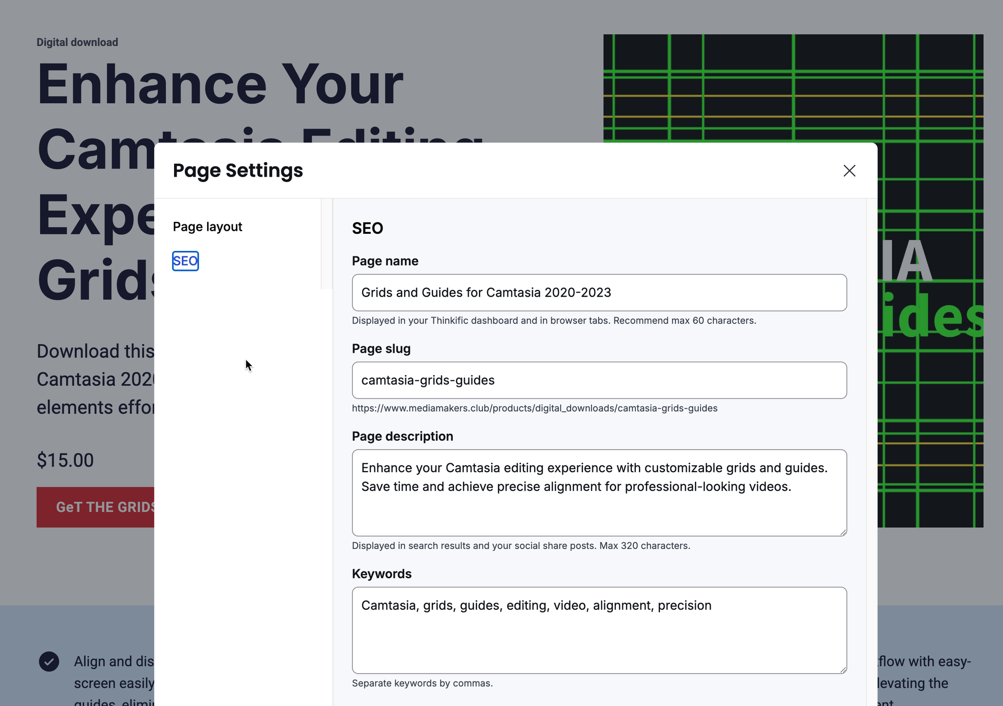 Beyond courses and memberships, Thinkific supports the sale of digital downloads as standalone products. These can be PDFs, templates, workbooks, audio files, or any other downloadable file. You set a price, someone checks out, and they get access to the download. Simple. I use this to sell my Camtasia assets, for example: