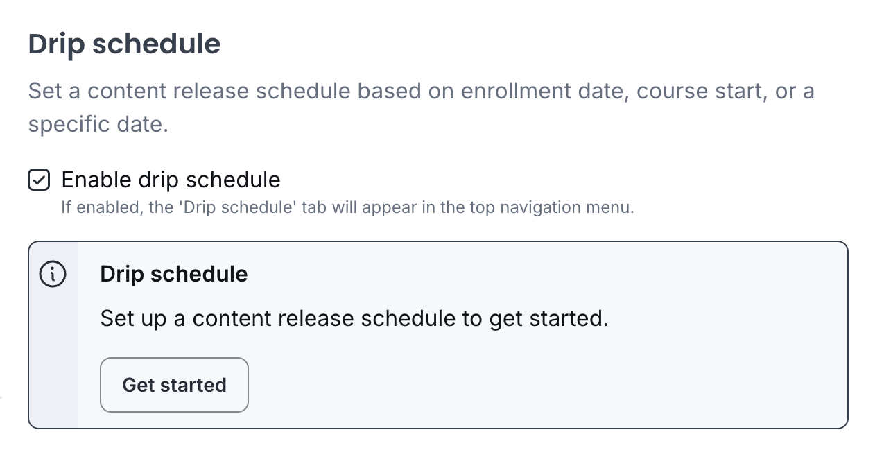You can also drip-release content on a schedule, which works well for programs where you want students to move through material at a particular pace rather than jumping straight to the end.