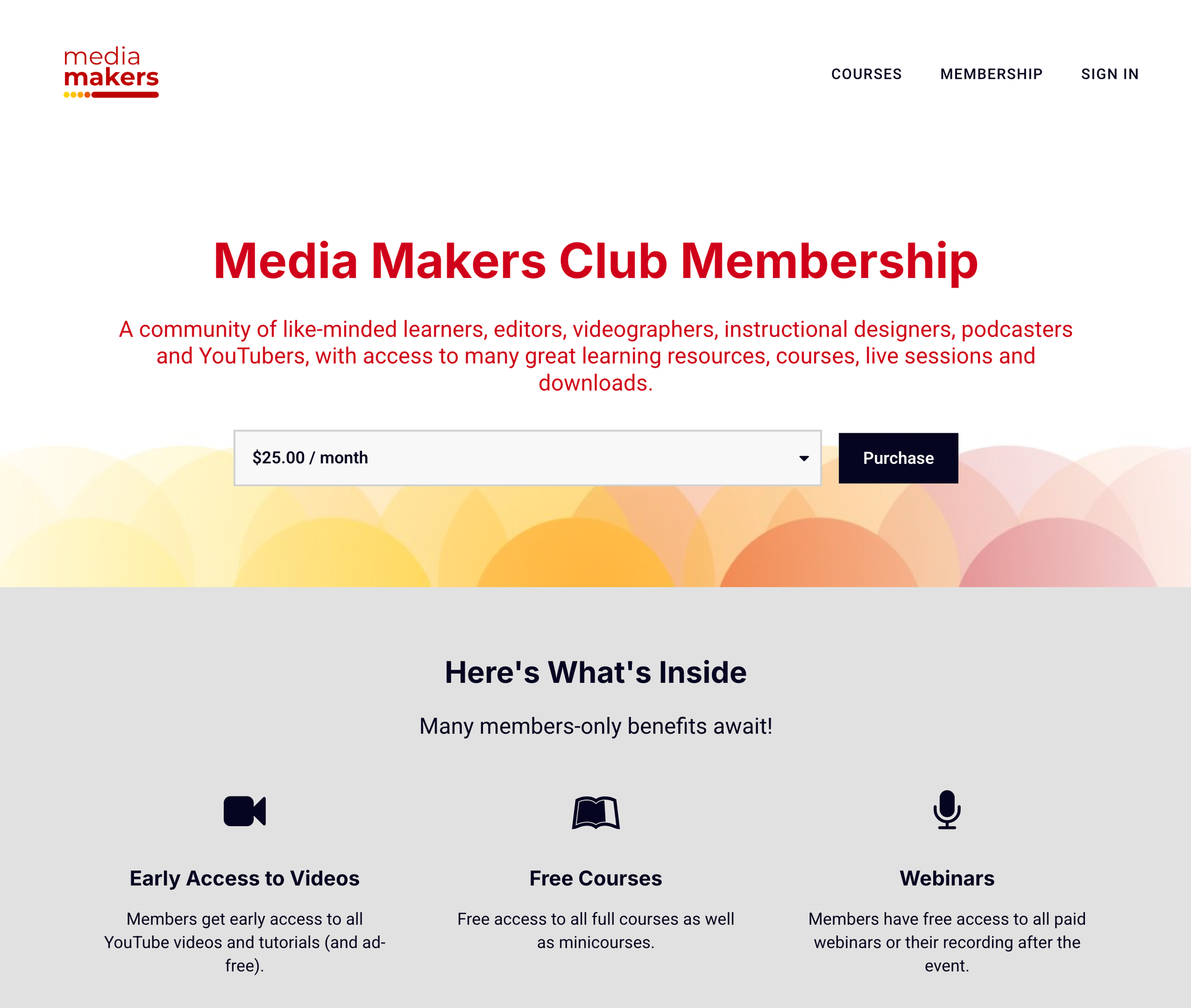 For MediaMakers.club, this is how I give members monthly access to a growing content library alongside the community. As I add new courses or resources, I add them to the membership and existing subscribers automatically get access. There's no need to manually adjust anything per member or send individual access links.