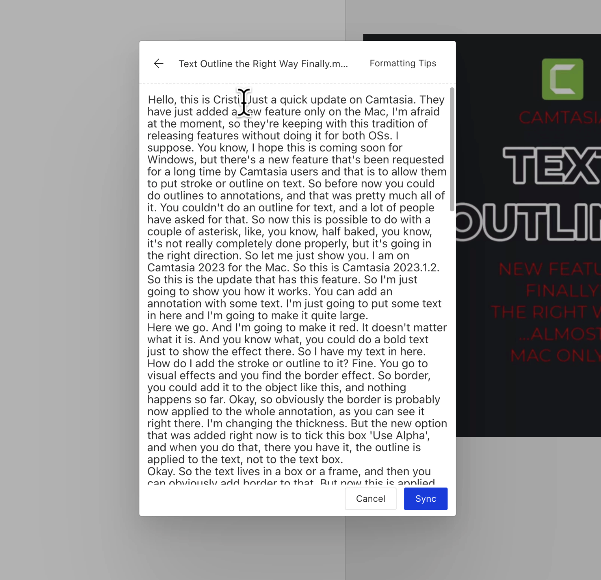 Step 3: Paste your transcript in the text box and click 'Sync'