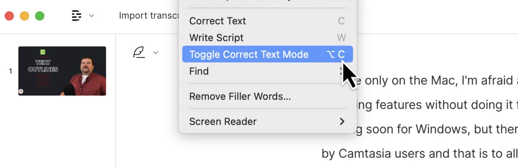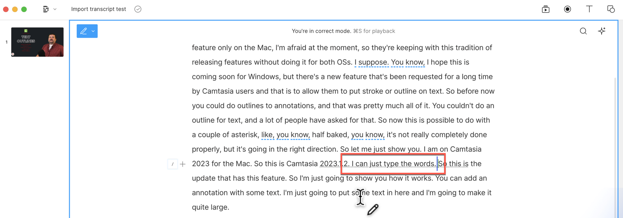 If you already have a transcript, perhaps one that's been meticulously corrected outside of Descript, it's time to prepare it for synchronization. You don't need to do any fancy editing, just a text file will do. Formatting will not be imported anyway.